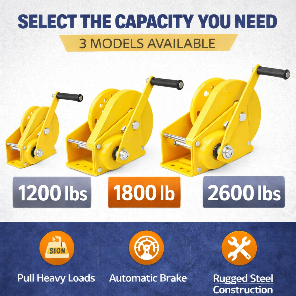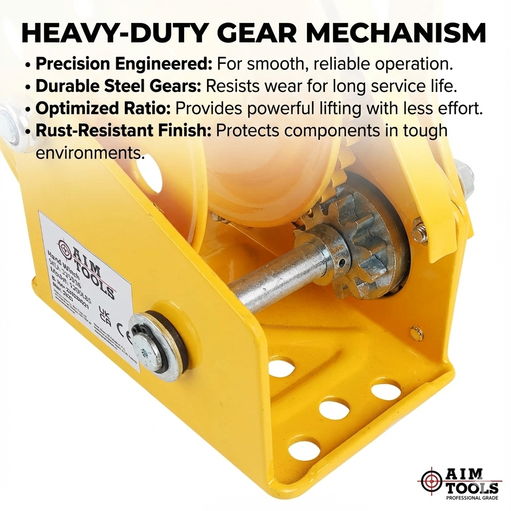 Aim Tools Hand Winch 1200-2600LB – Automatic Brake Ratchet Gear | Manual Crank