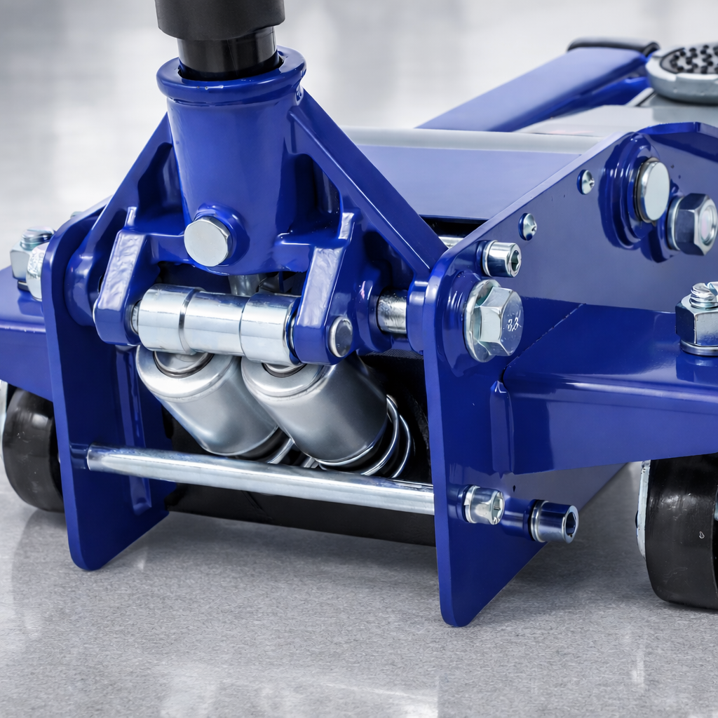 Twin piston pump quick lift allows you to easily raise the jack to the desired height and with ergonomic carrying handle
