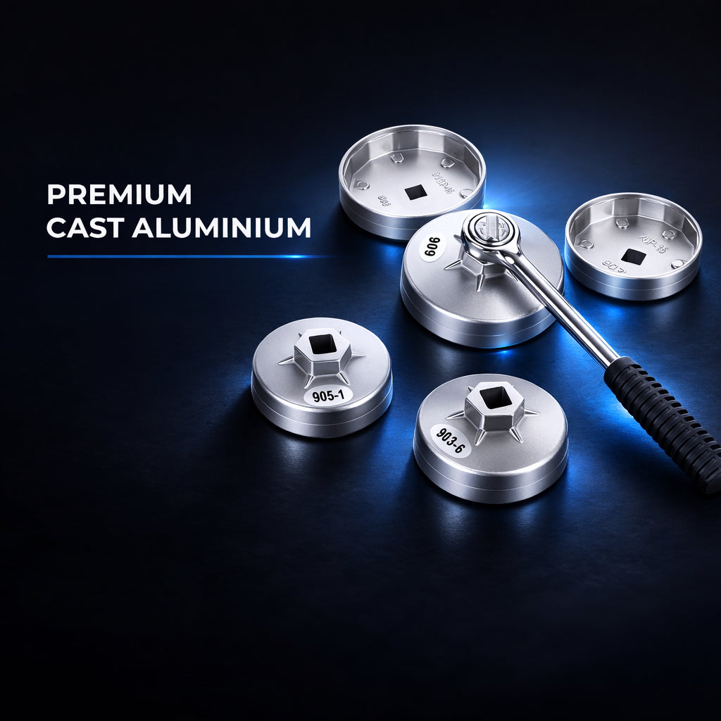 • Precision-machined aluminium cups → Even torque distribution across filter housing → Reduces risk of cracking or rounding