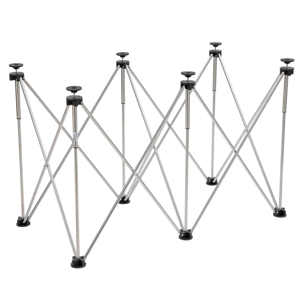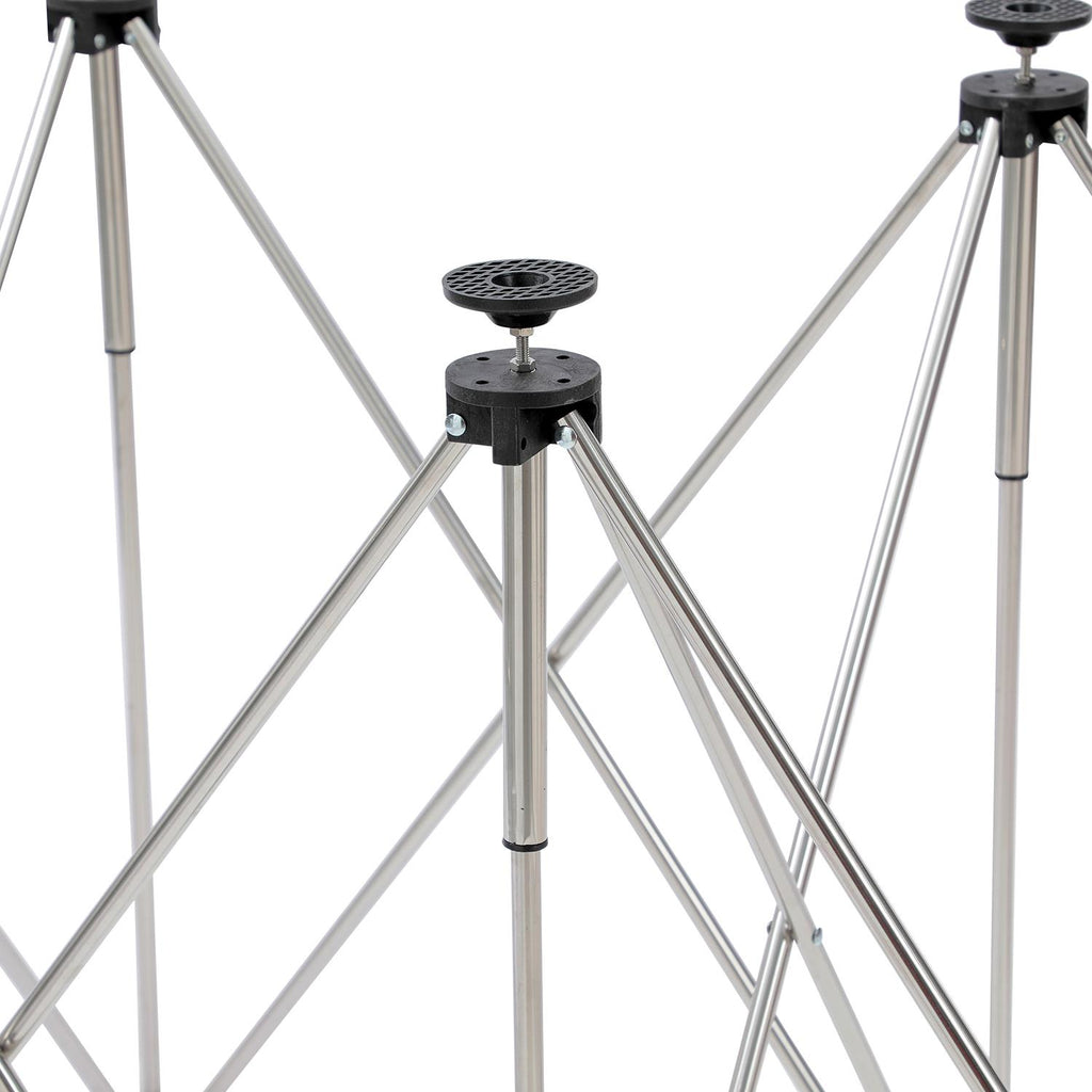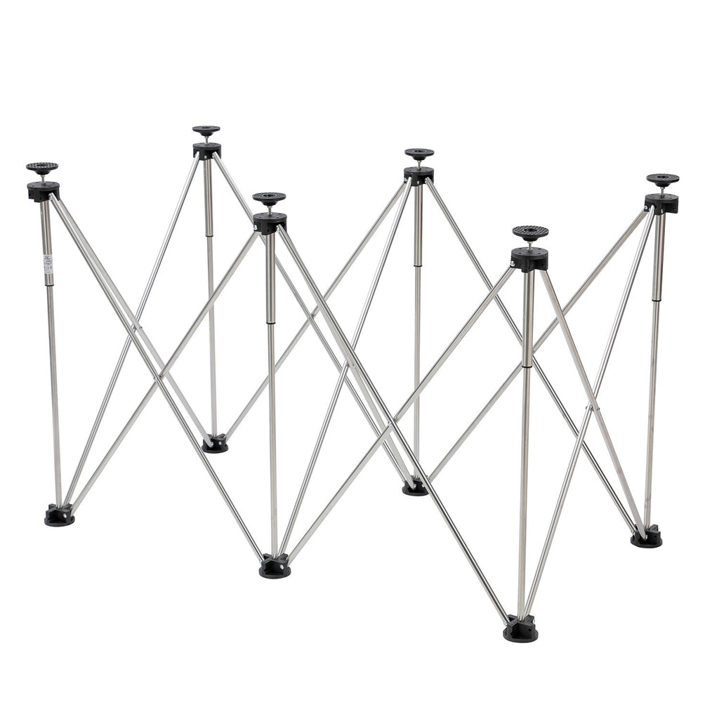 Stainless steel legs with multiple support points offer stable platform on ground surfaces.