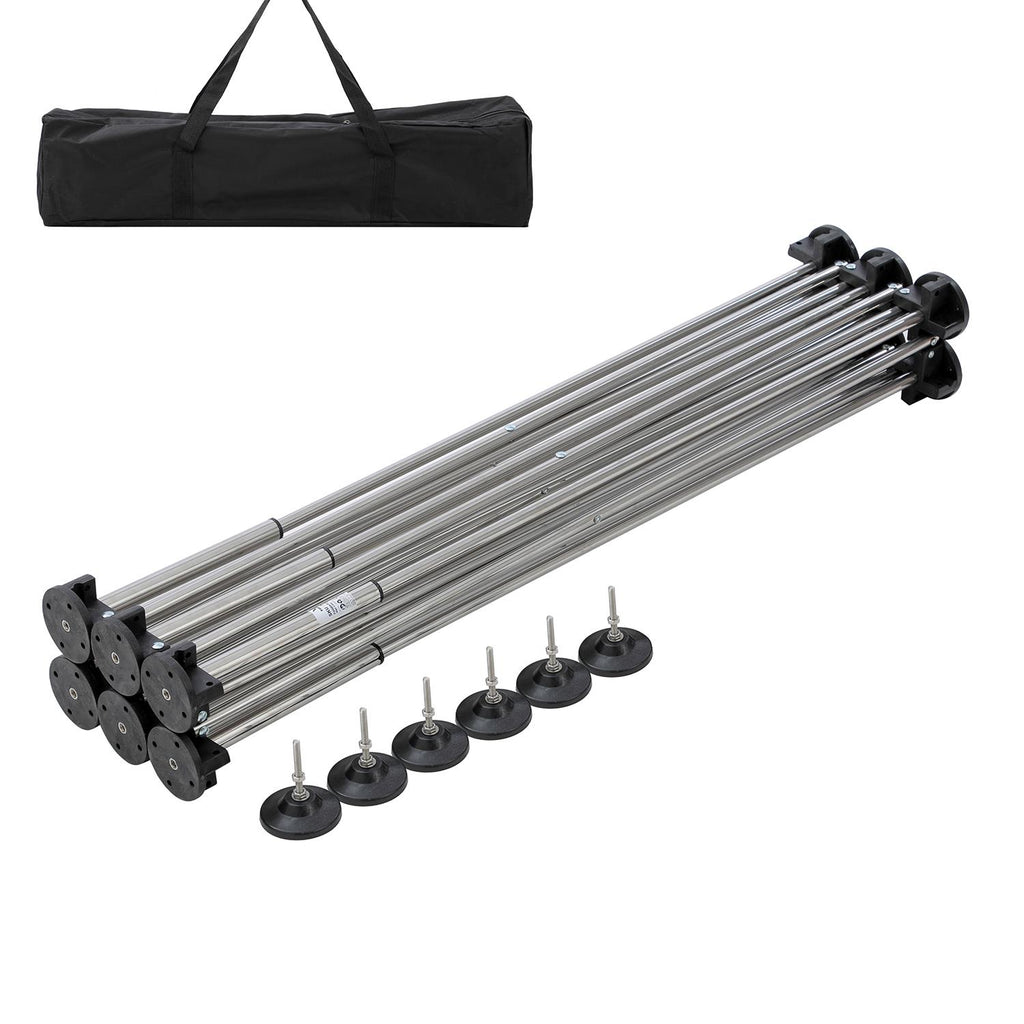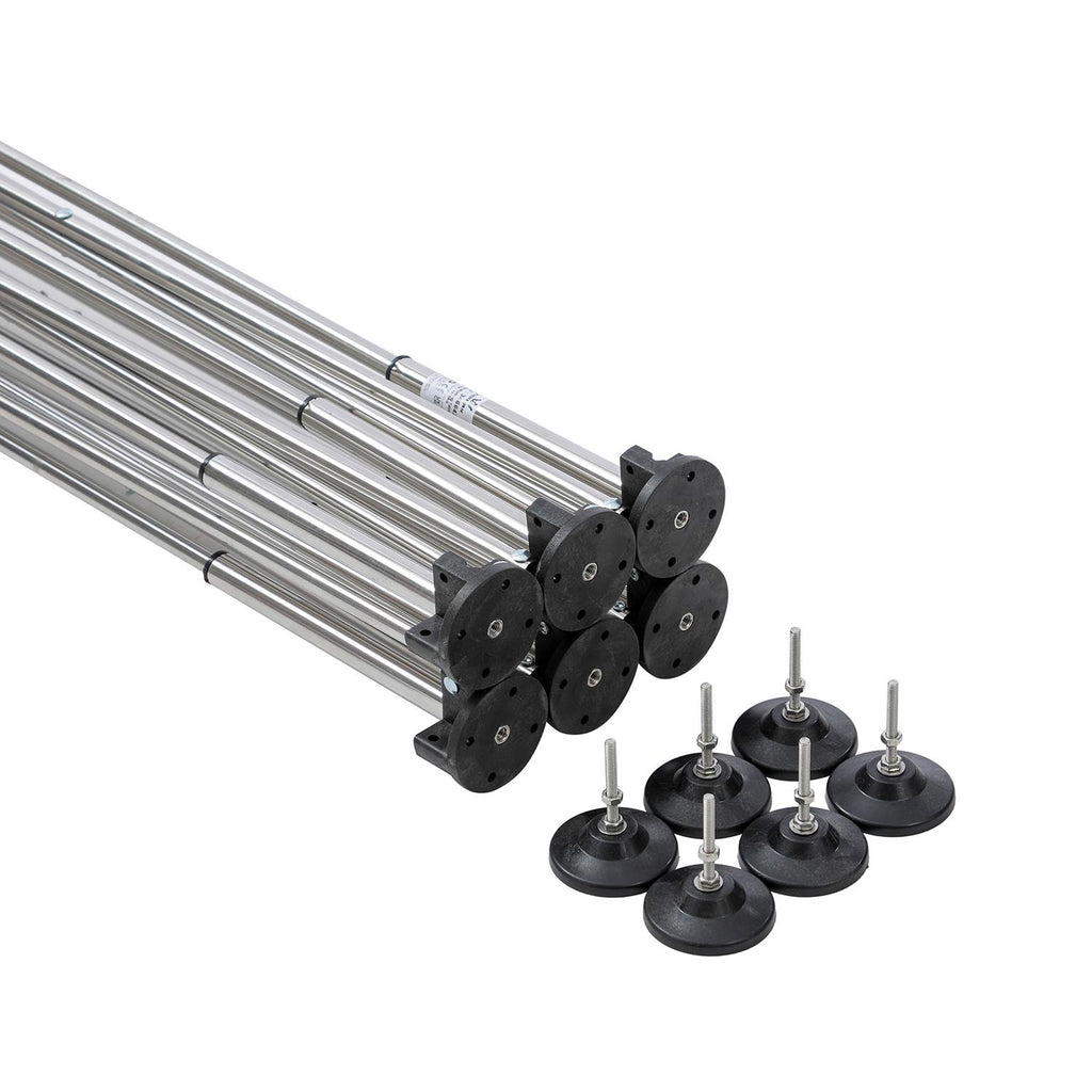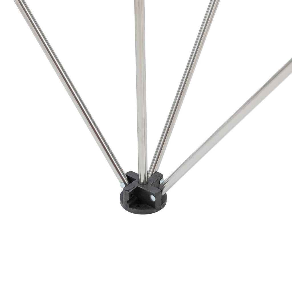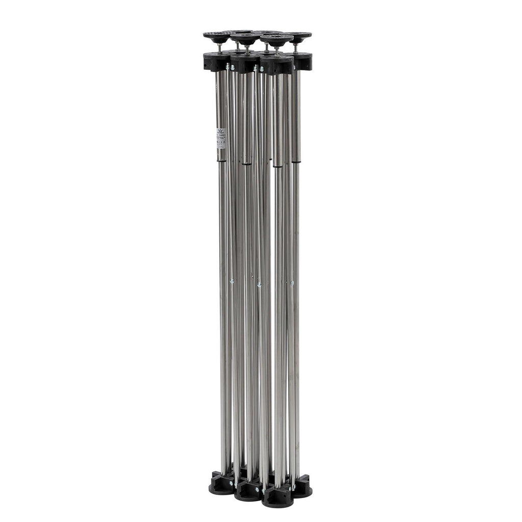 Stainless steel legs with multiple support points offer stable platform on ground surfaces.