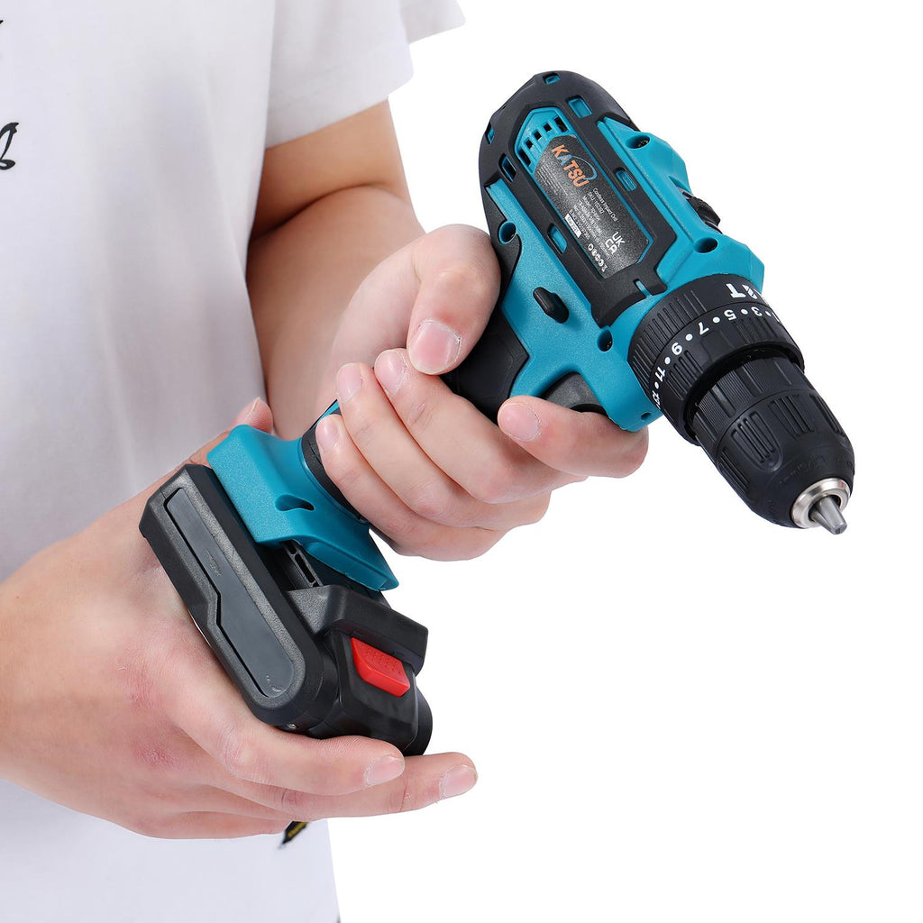 3 in 1 cordless drill, cordless screwdriver and compact drill, 2-speed gear shift for drilling and screws Ideal for drilling wood, metal, plastic, and all screw drive tasks with a maximum torque of 45 N.m;