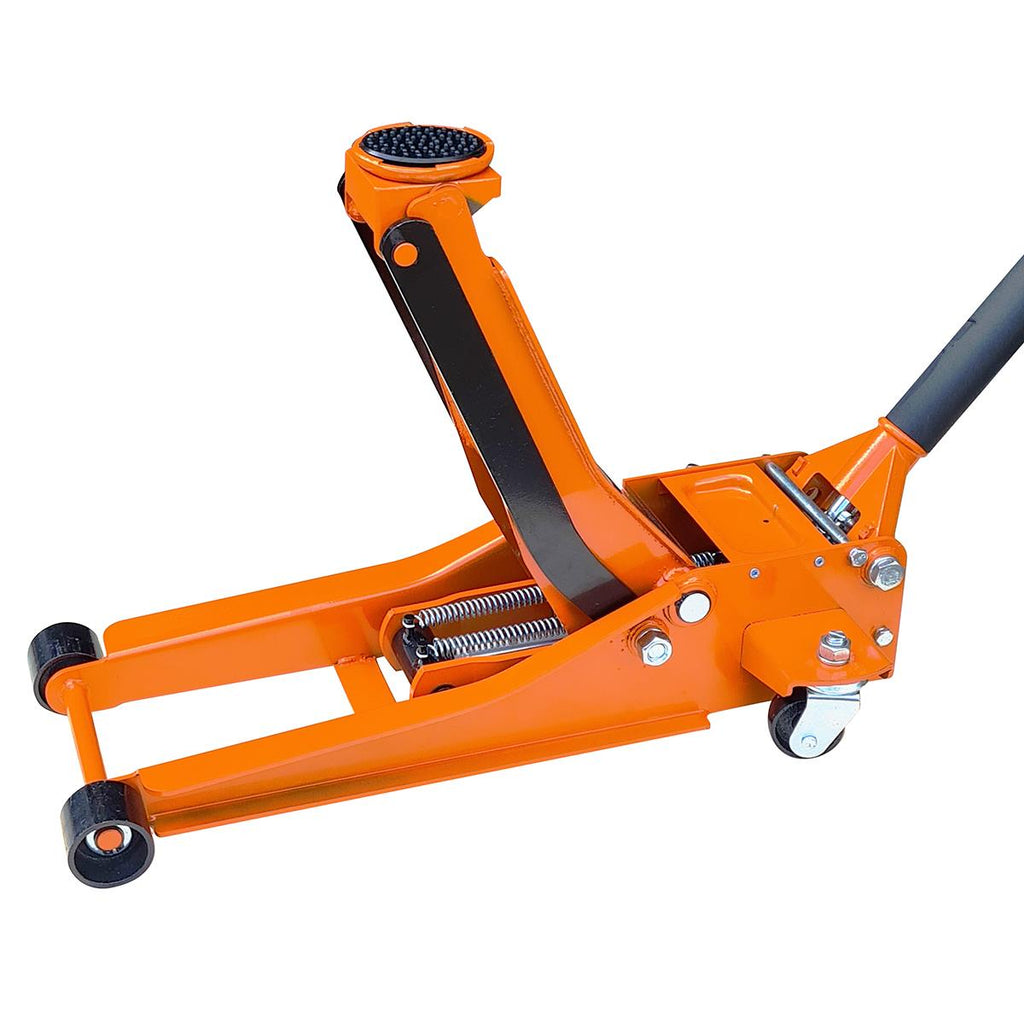 Twin piston pump quick lift allows you to easily raise the jack to the desired height and with ergonomic carrying handle.