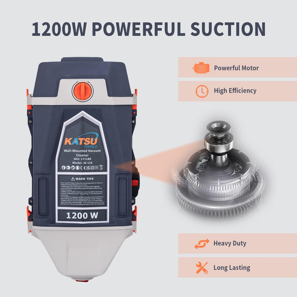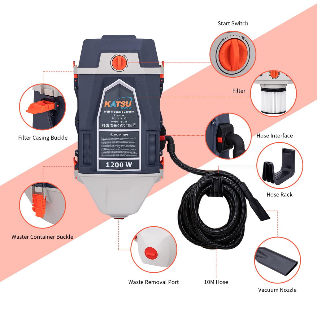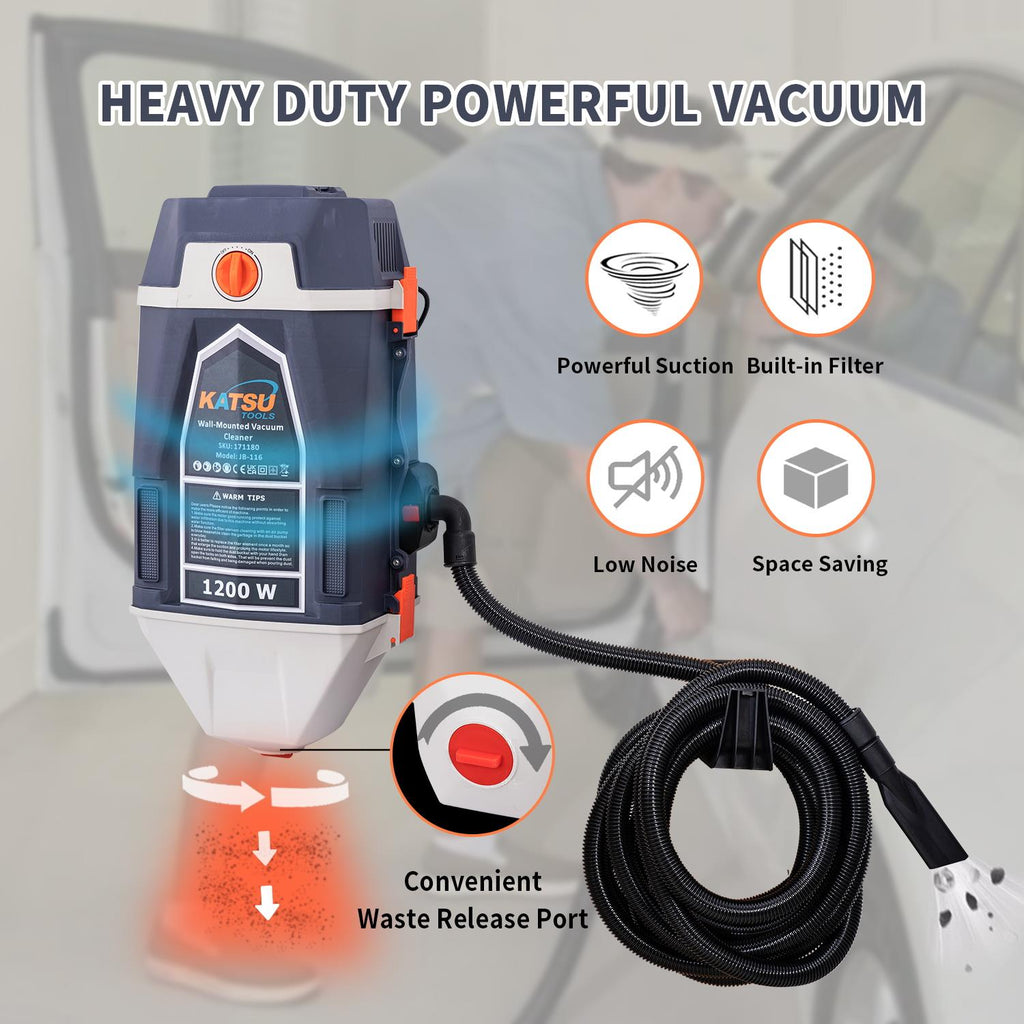 KATSU Wall Mounted Car Vacuum Cleaner w 10M Hose