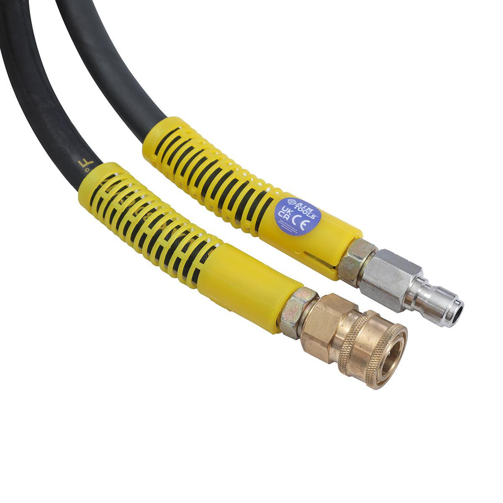 9M Pressure washer hose, made from high tensile Steel-Wire Braid, scuff and mark resistant construction for prolonged service life and no leaking.