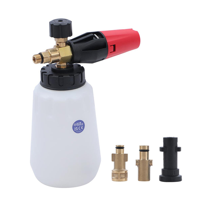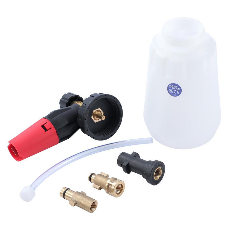 Adjustable snow foam lance with 1/4" quick release connector, suitable for most of the pressure washers on the market. Requires pressure washer to have:1000 PSI - 3000 PSI.