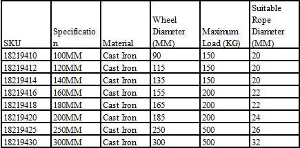 Heavy Duty hand rope pulley wheel 300mm with bearings and hook.