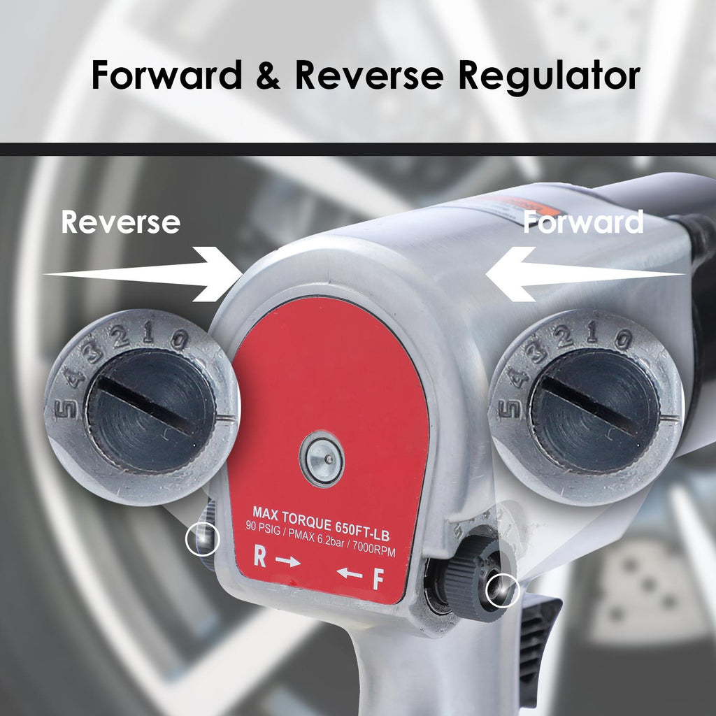 Features a forward/reverse regulator, Adjustable air/torque power control.