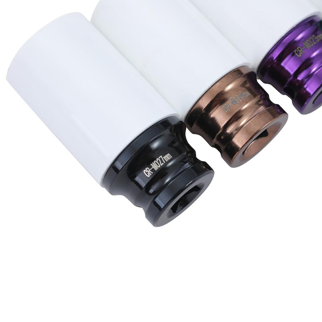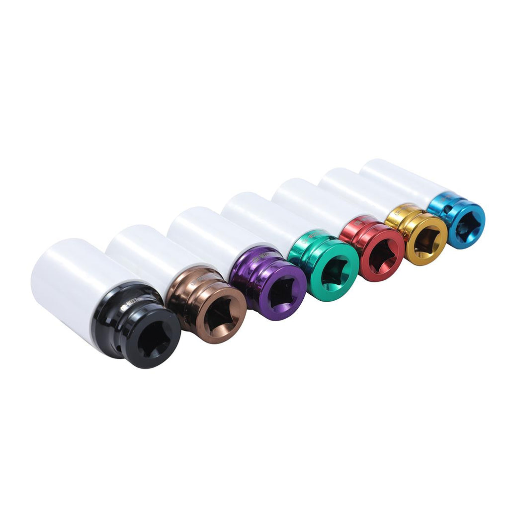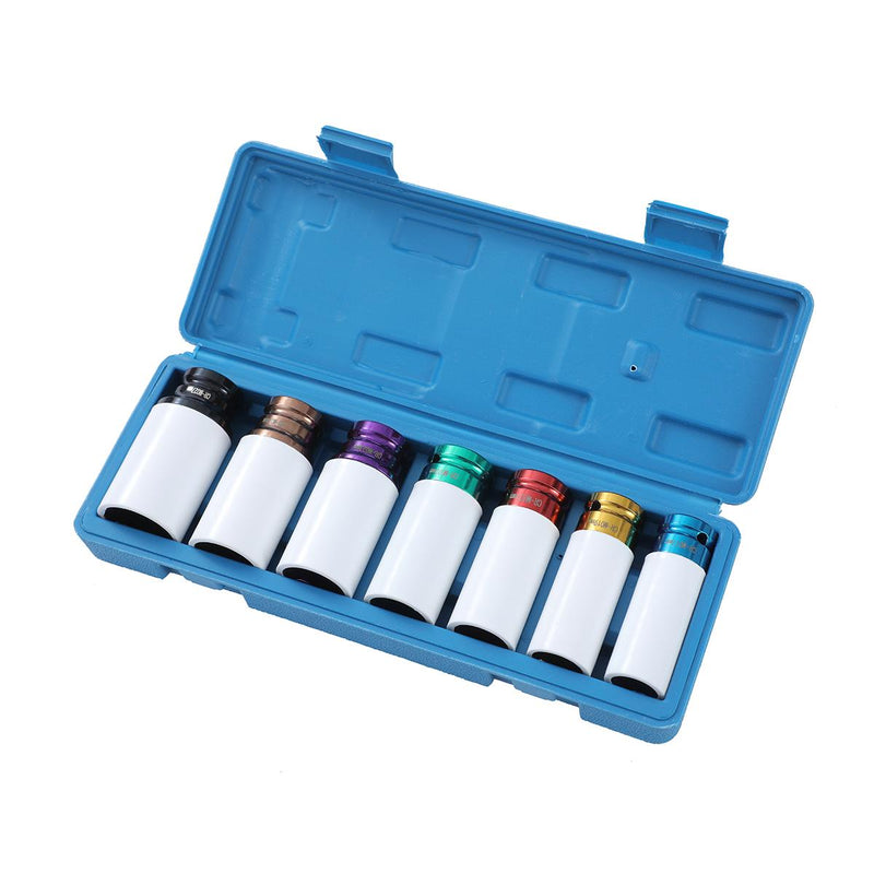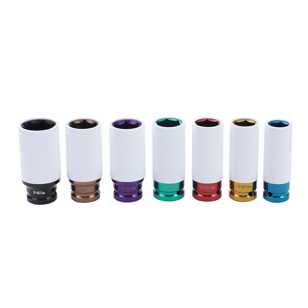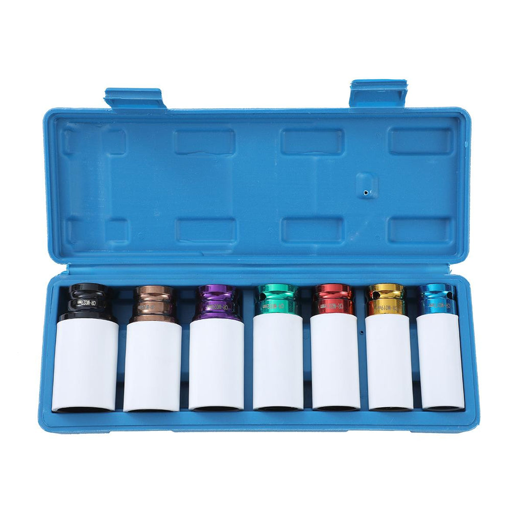 1 x 7 PCs Thin Wall Deep Impact Nut Socket Alloy Wheel 1/2" Drive 17mm 19mm 21mm 22mm 23mm 24mm 27mm Kit.