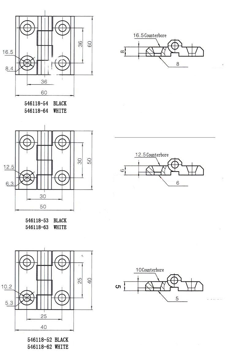 Industrial Hinges with Zinc Alloy 60x60mm 1 Pair