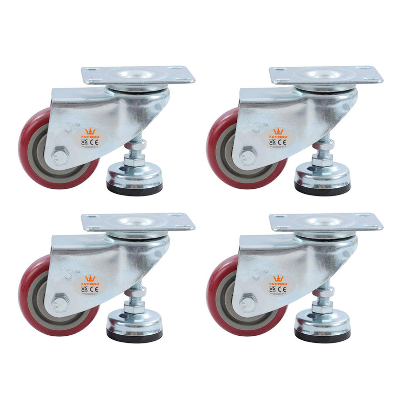 Swivel Leveling Castor 4PCs 75mm 3" - Red