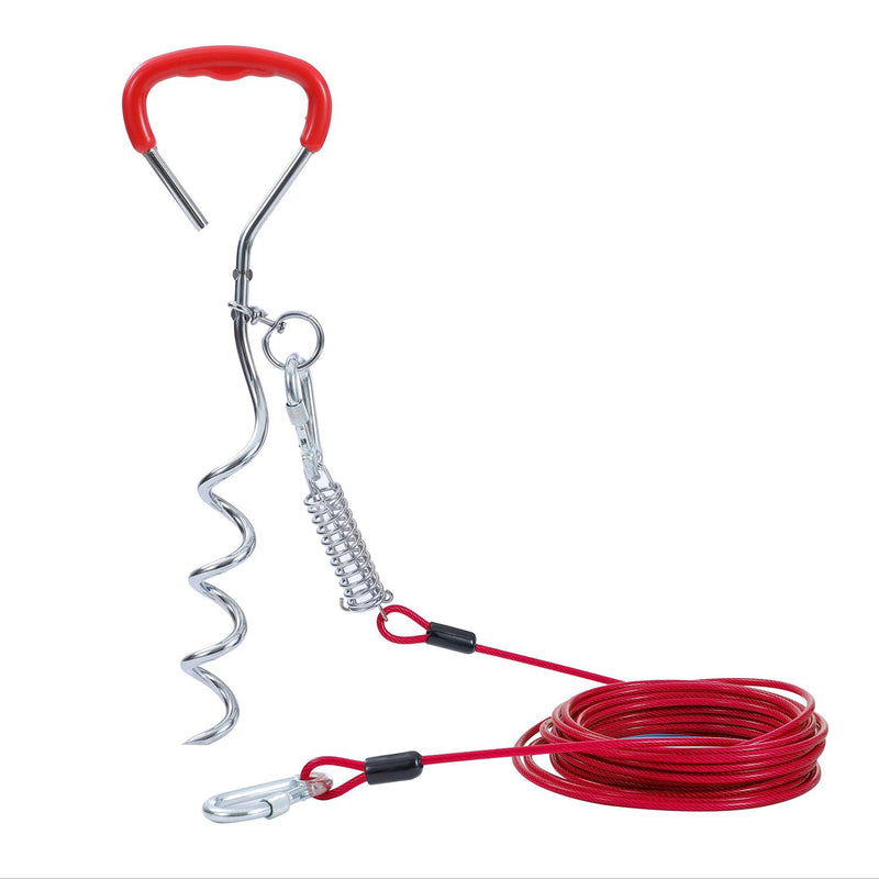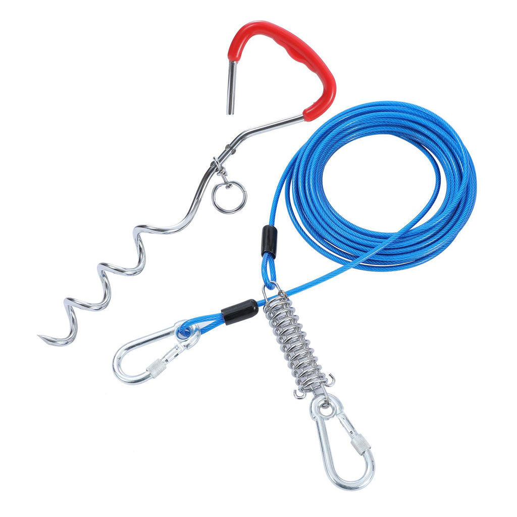 10m/33ft Galvanized steel dog tie out cable and galvanized iron stake, anti-rust and durable.