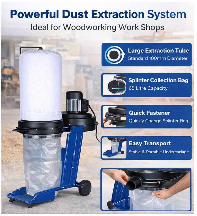 Built for everyday workshop use, this dust extractor delivers dependable chip collection performance with straightforward operation and maintenance. Designed to support clean, organised woodworking spaces without unnecessary complexity.